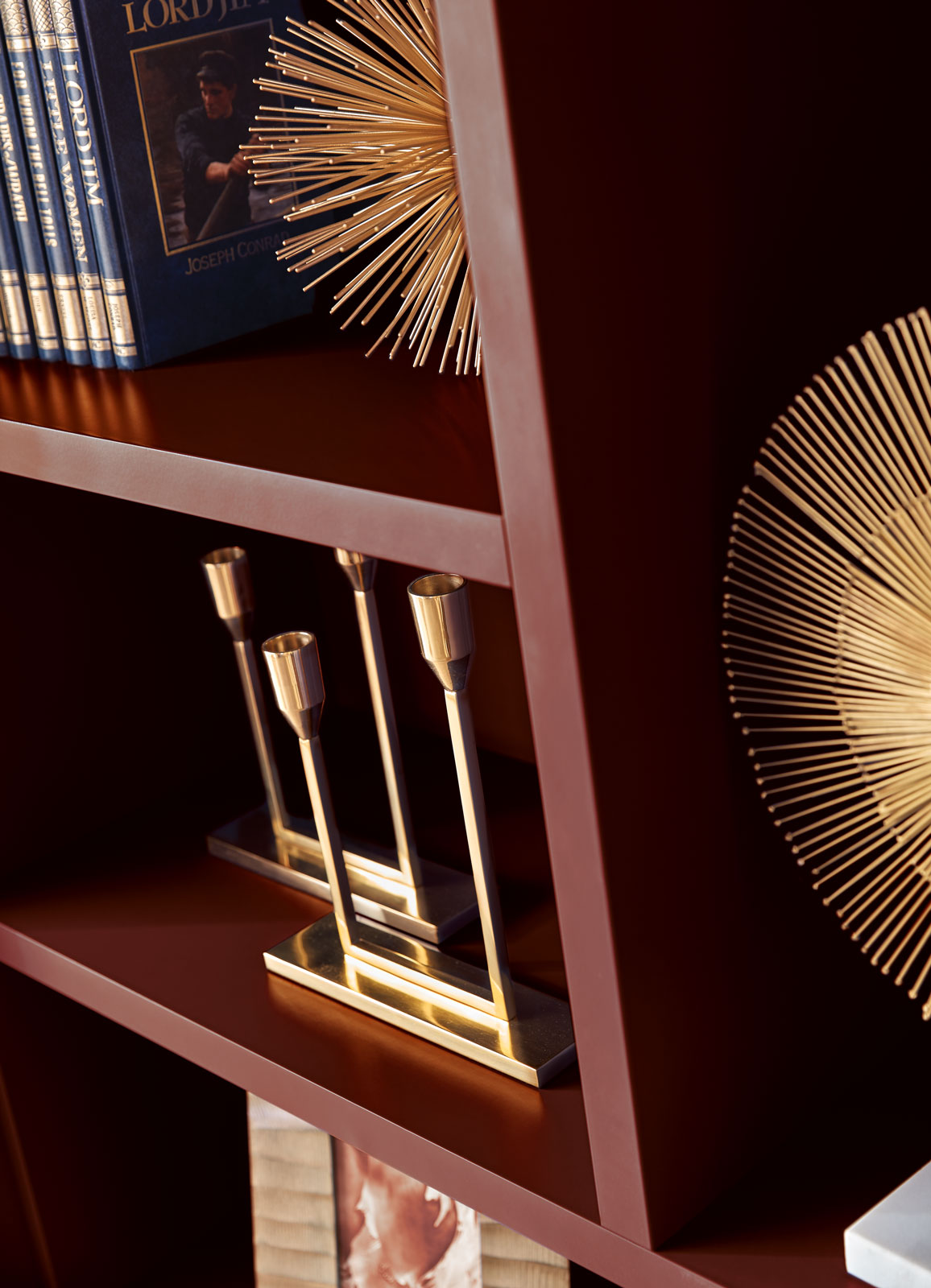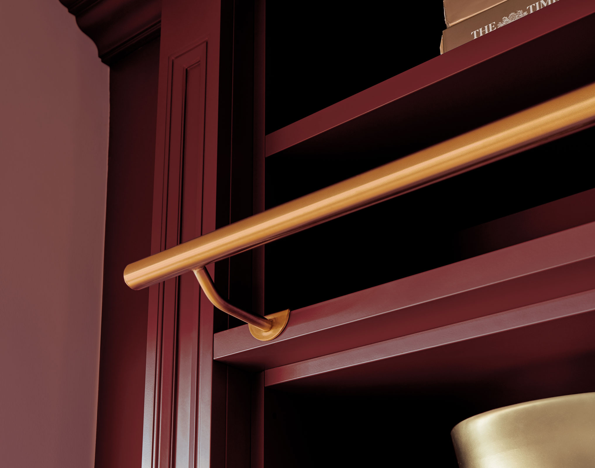 This luxury library is handcrafted to bring both vibrancy and refinement to the home. Bespoke cabinetry has been designed with balance in mind – open shelving to showcase personal collections, paired with beautifully crafted cupboards for seamless storage. Finished in our deep Carmine shade, this design is a striking focal point that elevates any interior.