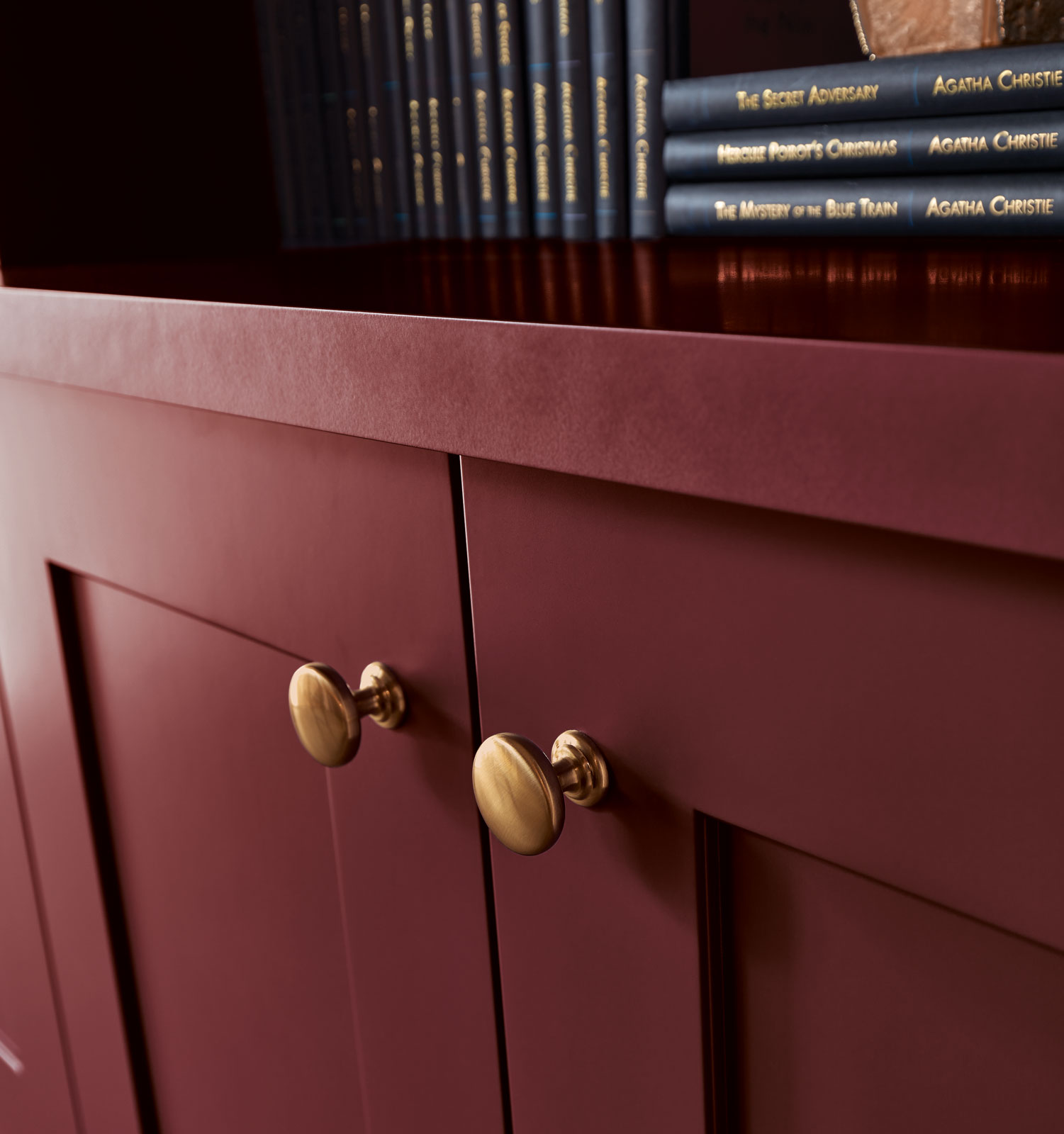 Handcrafted wooden furniture doesn’t have to be understated – as this striking red library proves. Finished in Carmine, a bold and elegant shade from our extensive collection, it’s a flawless example of how colour can elevate timeless craftsmanship.